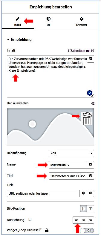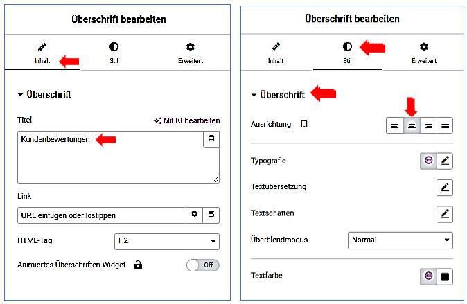 Überschrift einfügen (Kundenbewertungen)