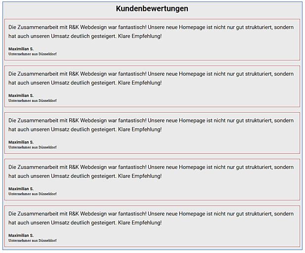 Kundenbewertungen nebeneinander anzeigen
