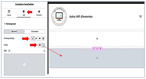 Elementor bearbeiten / Stil / Hintergrund / Hintergrund-Typ: Klassisch