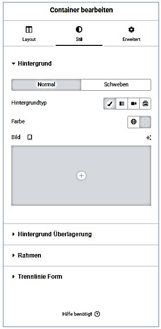 - Hintergrundposition: Hier können Sie festlegen, wie das Hintergrundbild im Container positioniert wird (z.B. zentriert, oben links).