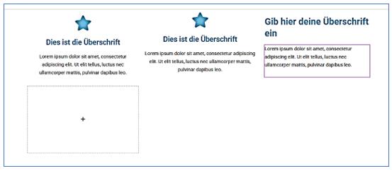 In jedes Feld können Sie nur 1 Widget einfügen und immer der Reihe nach, also von links nach rechts. Sie können aber auch in ein Feld einen Flex-Container einfügen und darin haben Sie alle Möglichkeiten.