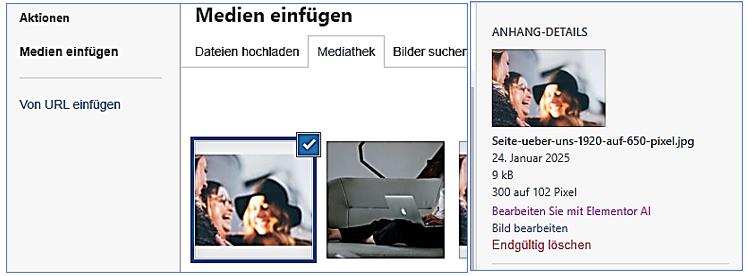 Bei Bedarf Bild in Mediathek hochladen und dann auswählen