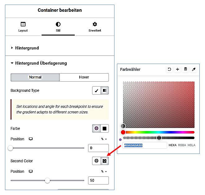 Container bearbeiten / Stil / Hintergrund-Überlagerung