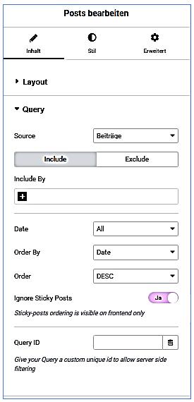 Sie können spezifische Beiträge hinzufügen oder bestimmte Beiträge ausschließen, indem Sie deren IDs eingeben.