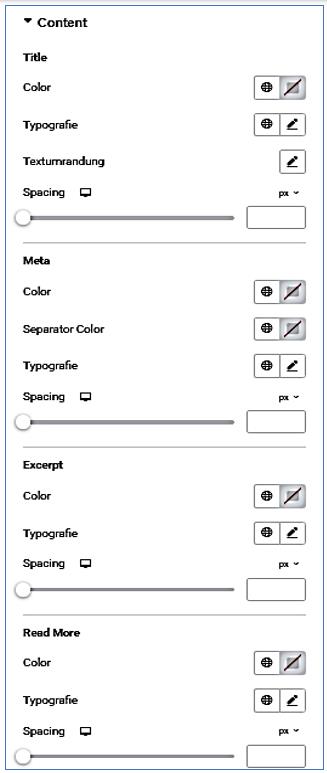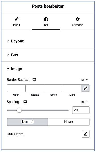 Im Bereich Stil können Sie das Aussehen der Beiträge anpassen.
