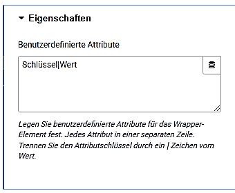 - Hier können Sie benutzerdefinierte HTML-Attribute hinzufügen, die für spezielle Funktionen oder Stile verwendet werden können. Dies ist nützlich, wenn Sie zusätzliche Funktionalitäten benötigen, die über die Standardoptionen hinausgehen.