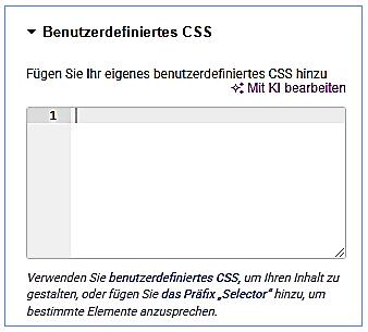 - Hier können Sie eine benutzerdefinierte CSS-Klasse hinzufügen. Dies ist nützlich, wenn Sie spezifische Stile anwenden möchten, die nicht in den Standardoptionen verfügbar sind.