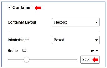 (innerer) Container bearbeiten / Layout / Elemente /