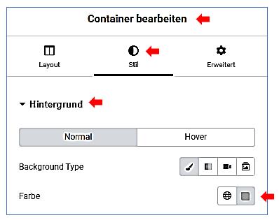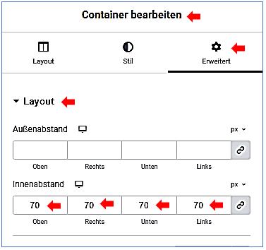 Container bearbeiten / Stil / Container bearbeiten / Erweitert