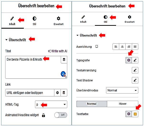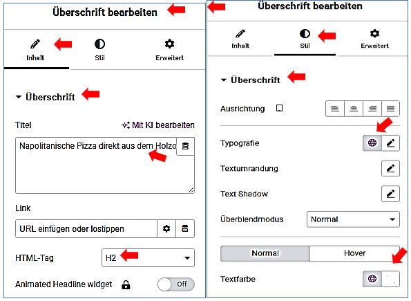 Widget Überschrift bearbeiten / Stil /