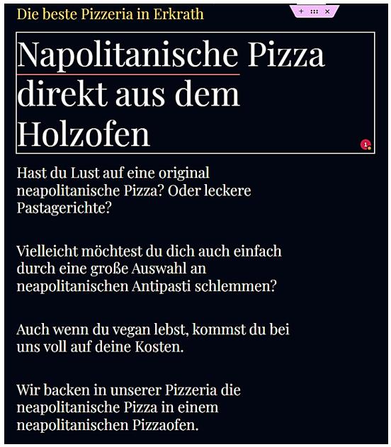 Zwischen der Willkommen-Sektion und Speisekarten Sektion ein Pizza-Symbol einrichten.