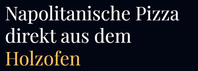 Text: Napolitanische Pizza direkt aus dem Holzofen