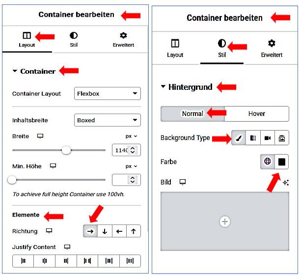 Container bearbeiten / Stil / Hintergrund / Normal /