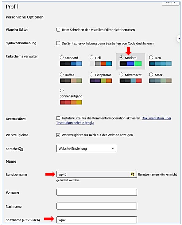 Hier können Benutzer eine kurze Beschreibung über sich selbst hinzufügen. - Farbschema