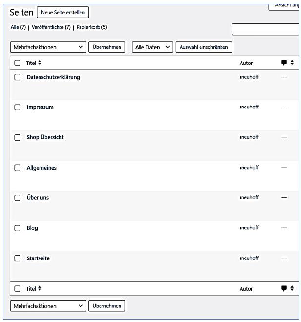 Zunächst legen Sie die Seiten nur mit einer Überschrift an, der Inhalt wird später festgeleg